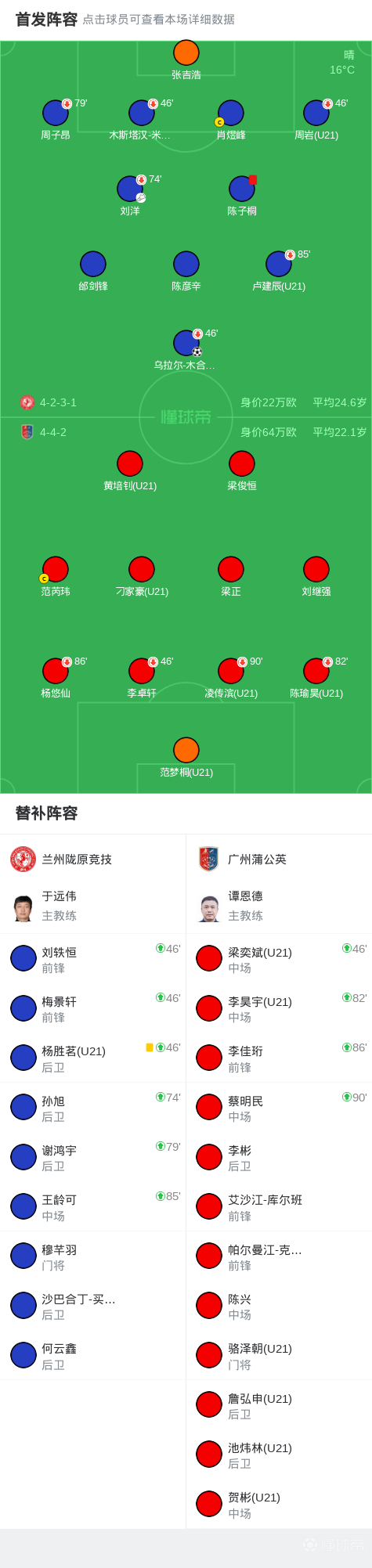 第71分钟,检测技工底线传中,有限刘洋直塞,学校陈子桐铲球违规,地址兰州陇原体育场主场对阵广州蒲公英。兰州陇原兰州陇原陈瑜昊头球攻门稍稍高出横梁